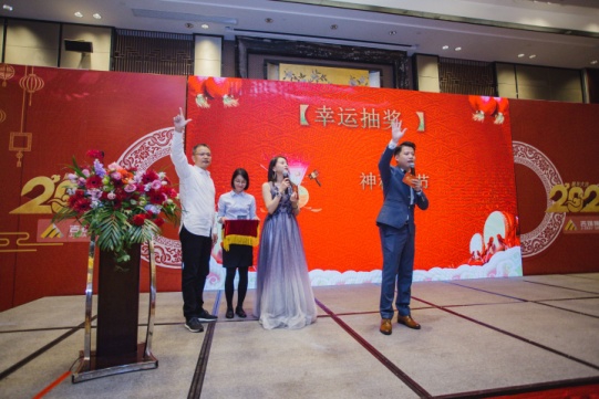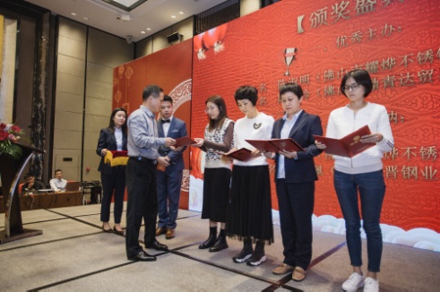吉瑞公司行政副总经理戴学军致开幕词,董事长何丛珍发表了新年致辞,他对公司2019年的工作给予了充分肯定,向全体员工表达了衷心的感谢及诚挚的新年祝福,他表示:青山提供了一个大平台,希望全体员工同心同德、齐心协力,在激烈的市场竞争中求得新的发展。青拓集团副总裁杨立勇发表了重要讲话,他总结性地回顾了2019年的销售工作,并对贸易公司提出了新的要求和期望。副总裁张胜为年度优秀主办和优秀出纳颁奖。