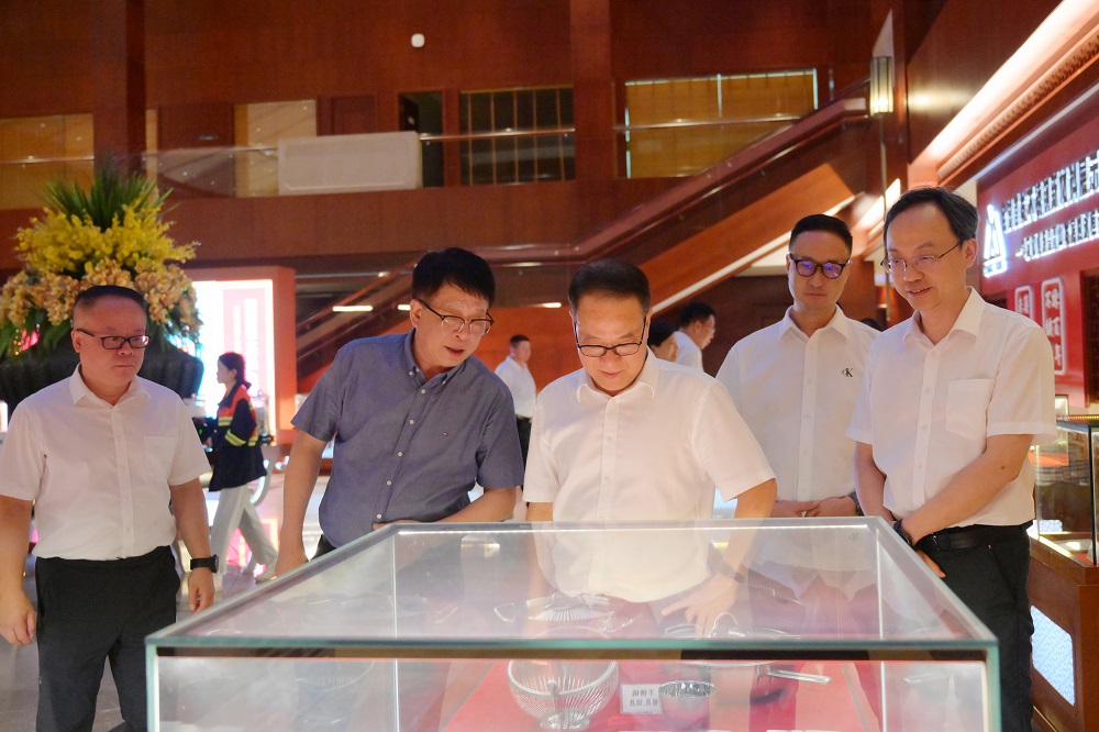 吴元祥一行首先参观了青拓集团供销大厅,陈庆科详细地介绍了青拓集团的发展历程和战略布局,让一行人员对青拓的发展脉络有了清晰的认识。吴元祥一行近距离察看了不锈钢生产原材料以及青拓集团自主研发的青拓笔尖钢、QN 系列不锈钢等产品,青拓集团在创新研发方面展现出的卓越成果给他们留下了深刻的印象,赢得了高度评价。吴元祥一行还参观了家具展厅,并观看了企业宣传片,更加全面、直观地感受了青拓集团的企业文化和发展成就。